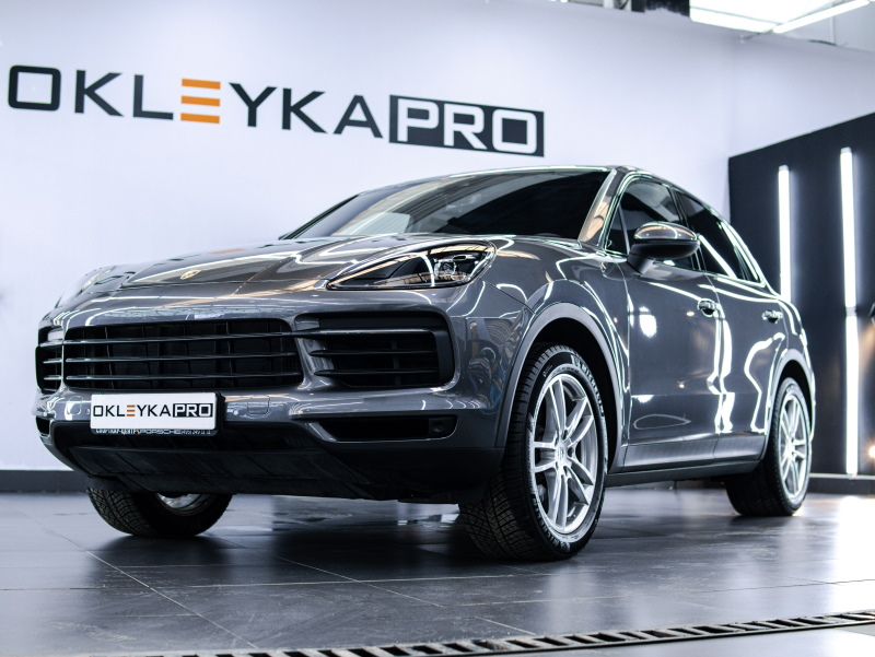 Оклеить переднюю часть кузова автомобиля Porsche Cayenne по пакету «Стандарт+».