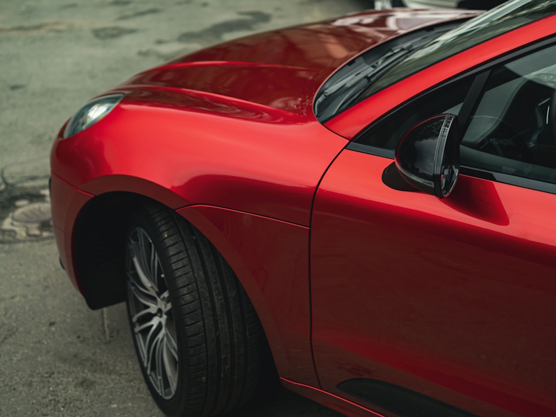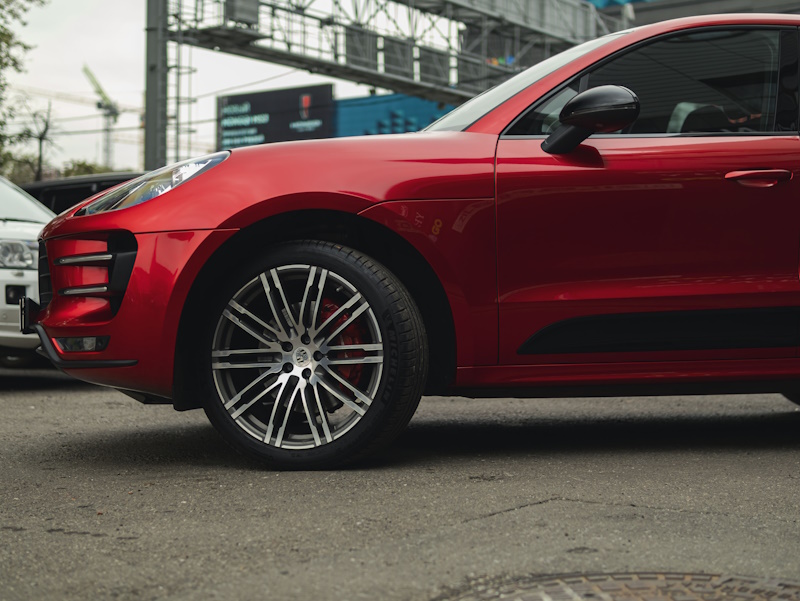 Изменить цвет кузова автомобиля Porsche Macan с коричневого на красный.