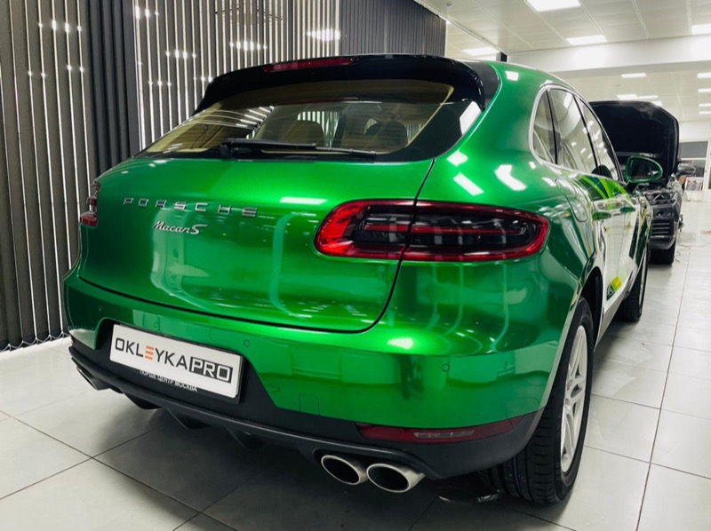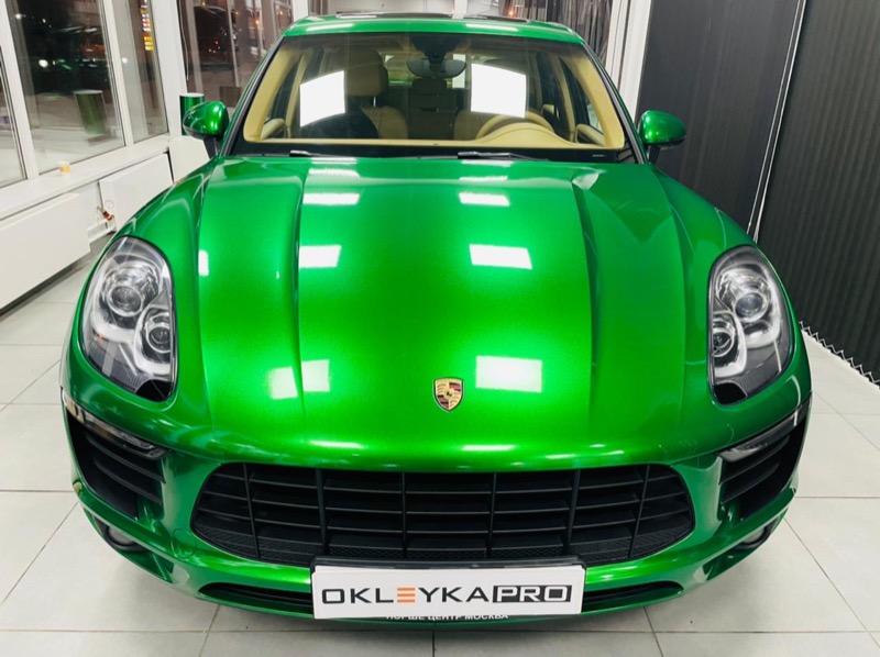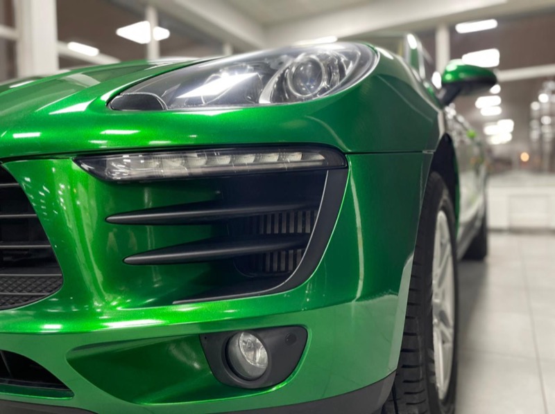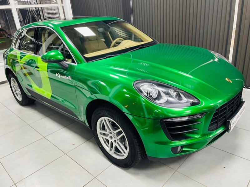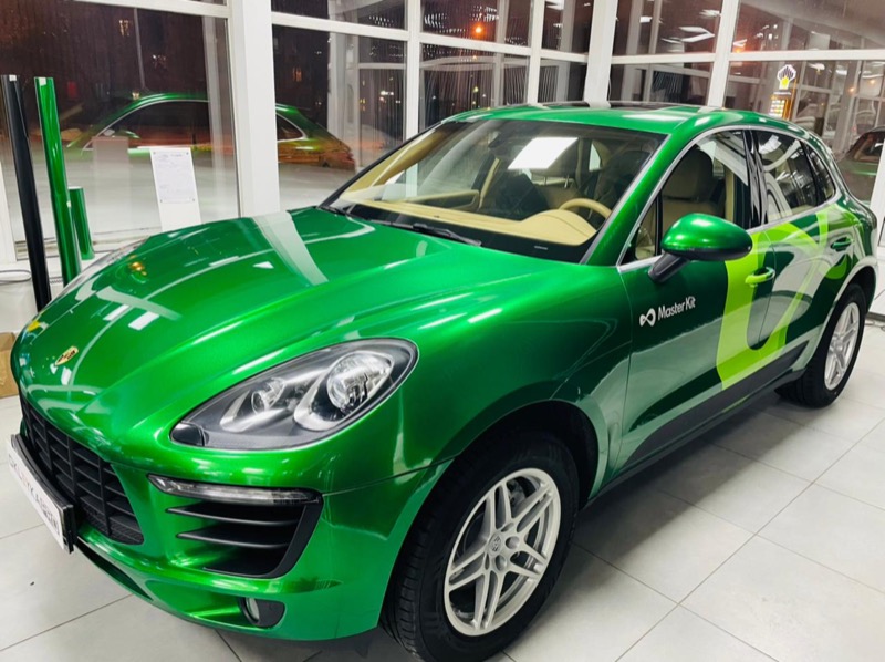 Смена цвета автомобиля Porsche Cayenne с коричневого на зеленый.