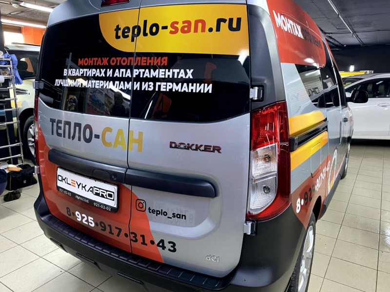 Брендирование автомобиля Рено Доккер в фирменном стиле компании Тепло-сан