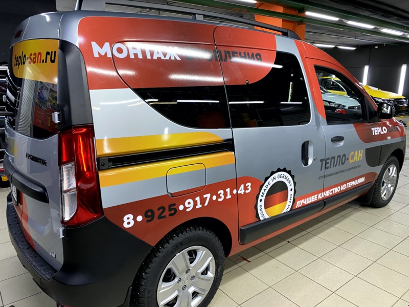 Забрендировать автомобиль Renault Dokker в фирменном стиле компании Тепло-сан