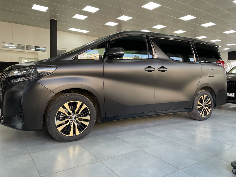 Полная оклейка автомобиля в виниловую пленку черного матового цвета.