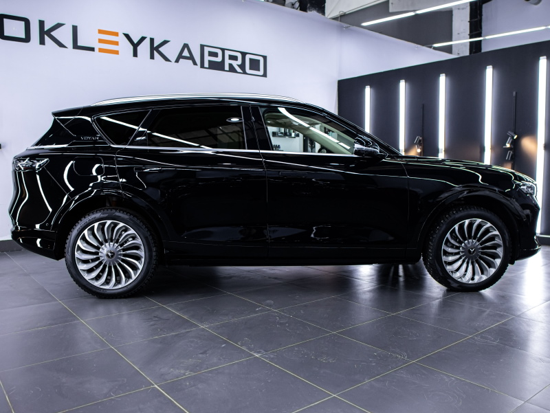 Выполнили полную оклейку кузова автомобиля VOYAH FREE в глянцевый полиуретан, забронировали лобовое стекло и сделали шумоизоляцию арок.