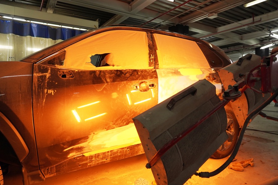 - Высокое качество реставрации. Обнаружить отремонтированный участок невозможно. Во многом этому способствуют яркое бестеневое освещение в покрасочной камере и четырехступенчатая система фильтрации воздуха от пыли и абразивных частиц.