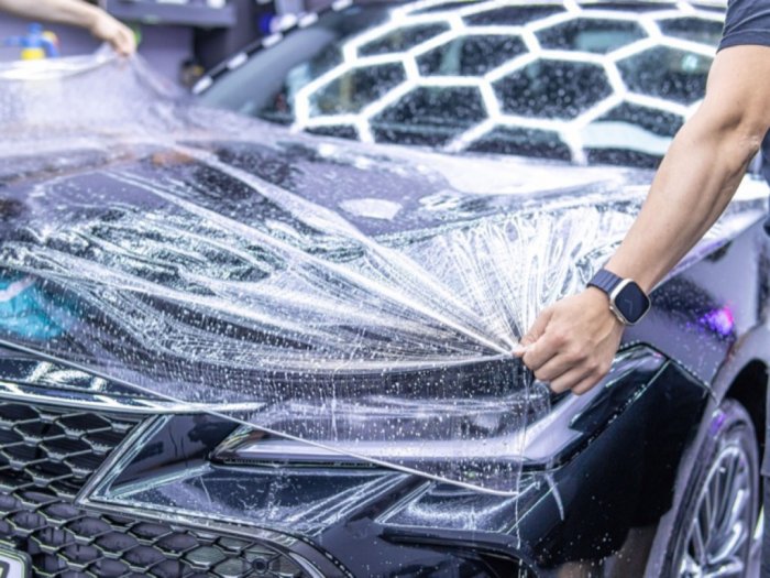 Полиуретановая. Стоит дороже, служит 5−7 лет. Имеет большую плотность (на фигурных участках края приходится аккуратно подрезать). Отлично гасит удары крупного щебня и гравия. Пропускает UV-лучи, поэтому при частичной оклейке все части кузова выглядят одинаково (имеют единый оттенок). Легко снимается одним пластом. Удаление можно выполнить самостоятельно, убрав остатки клея мягким растворителем (марку лучше подобрать вместе со специалистом).