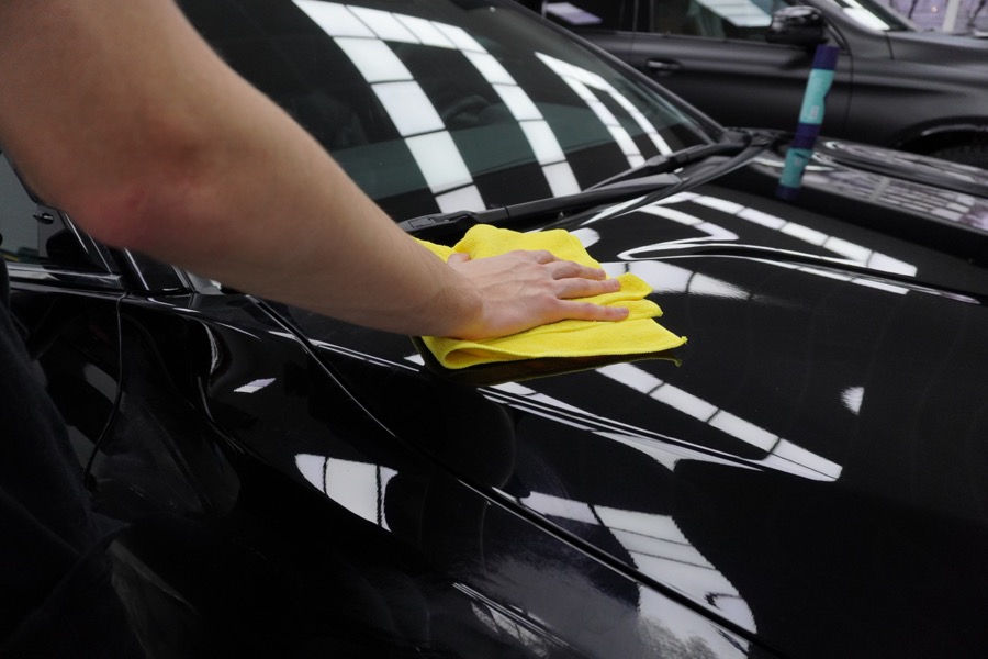 Натираем качественной микрофиброй для располировки. Для максимального блеска и отсутствия разводов используем финишную салфетку Q2M Polish wipe.