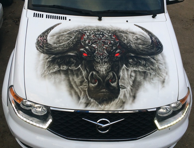 Бык, буйвол – аэрография, винилография пленками, наклейки.