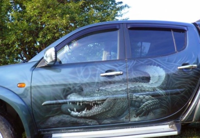 Крокодил — аэрография пленкой на автомобиль, мотоцикл, шлем.