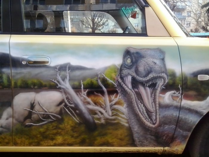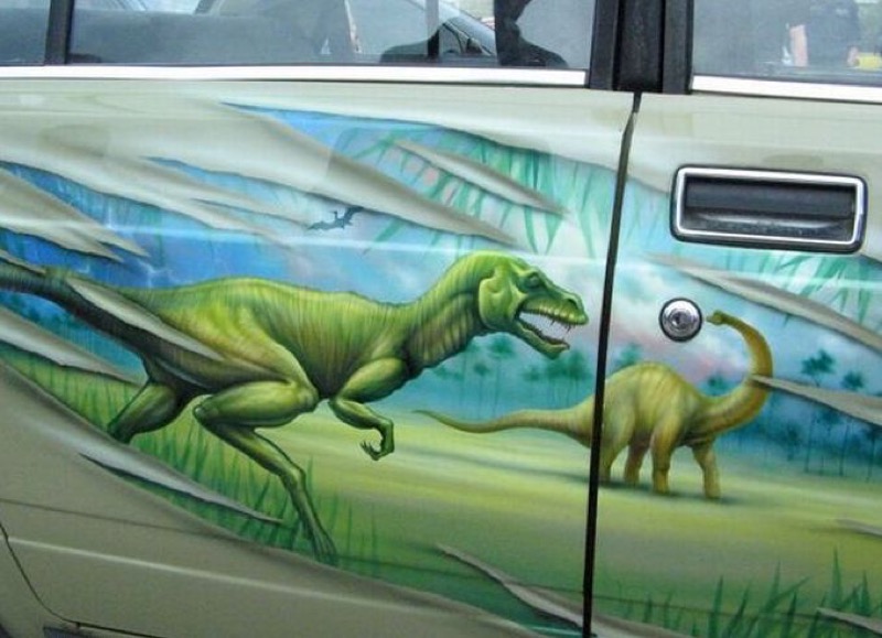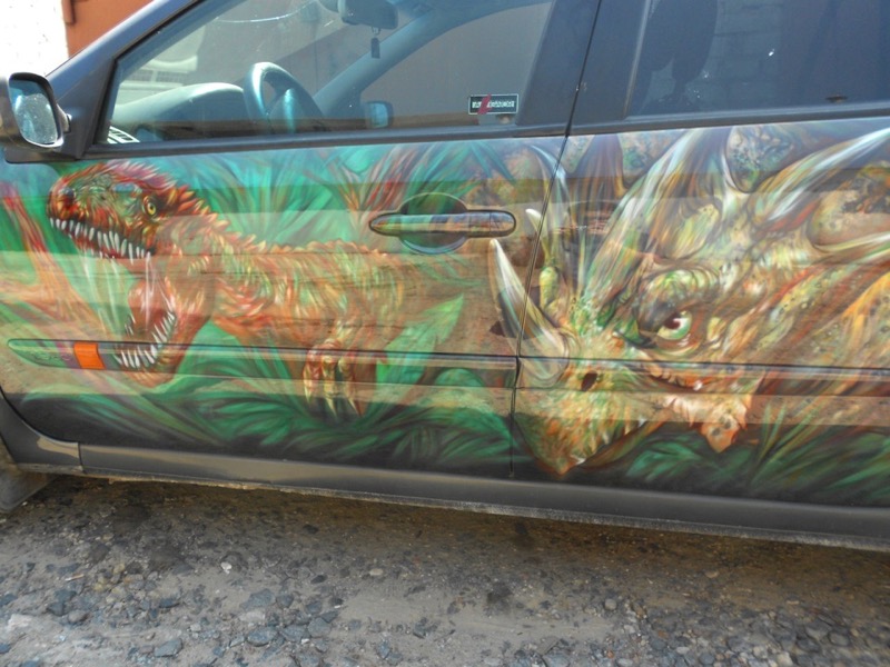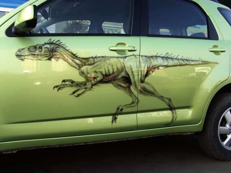 Динозавры на авто. Аэрография виниловой пленкой — винилография. На капот, кузов, крышу, двери, крылья, багажник.