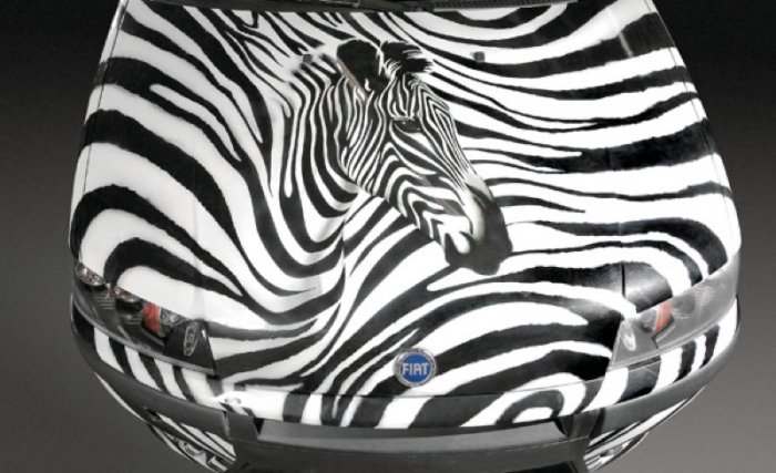 Зебра — аэрография пленкой на автомобиль, мотоцикл, шлем.