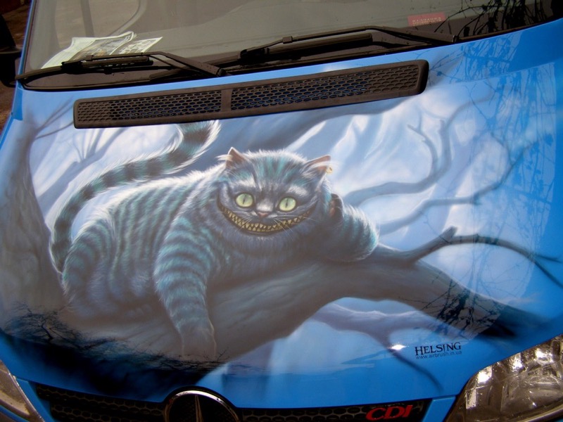 Виниловая наклейка на кузов авто с изображением героев замечательной сказки Льюиса Кэрролла будет ежедневно вдохновлять и радовать владельца позитивом. Окружающие с удовольствием будут перечитывать текст философских изречений Гусеницы на двери, багажнике или заднем стекле автомобиля. Детям понравится загадочная улыбка Чеширского кота и слегка грустный Шляпник-Джонни Депп на капоте, крыше и боках машины.