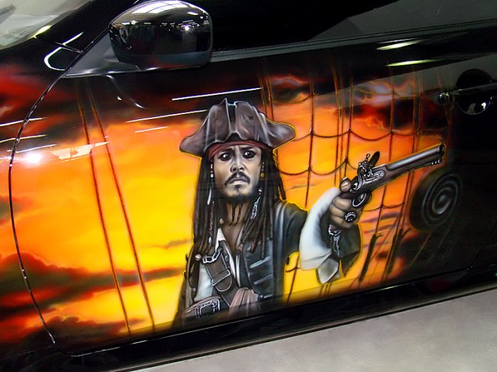 Пираты карибского моря — аэрография пленкой на автомобиль, мотоцикл, шлем.