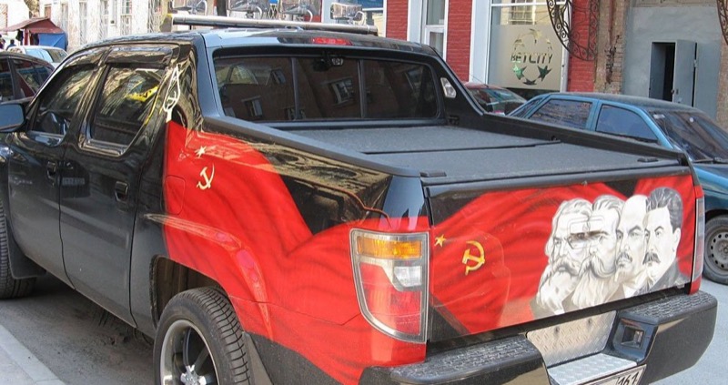 Аэрография пленкой — винилография на авто с изображением флага СССР, герба СССР, серпа и молота, и Красной звезды.