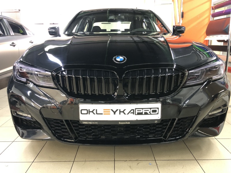 Что входит в услугу: оклейка капота, бамперов, крыльев, фар, стоек, дверей, ручек, зеркал, зоны погрузки, полоса на крышу, крышка багажника. Оклейка решетки радиатора в черный глянец.