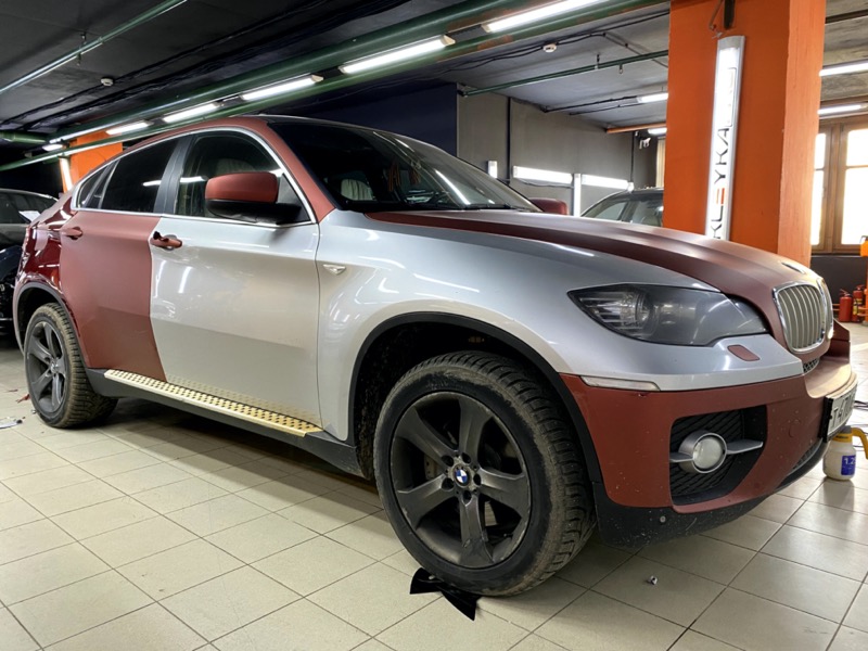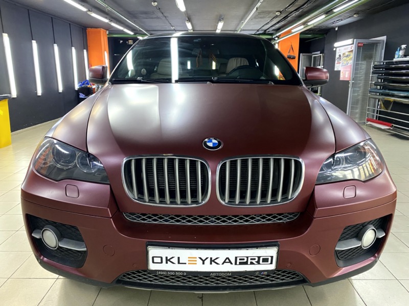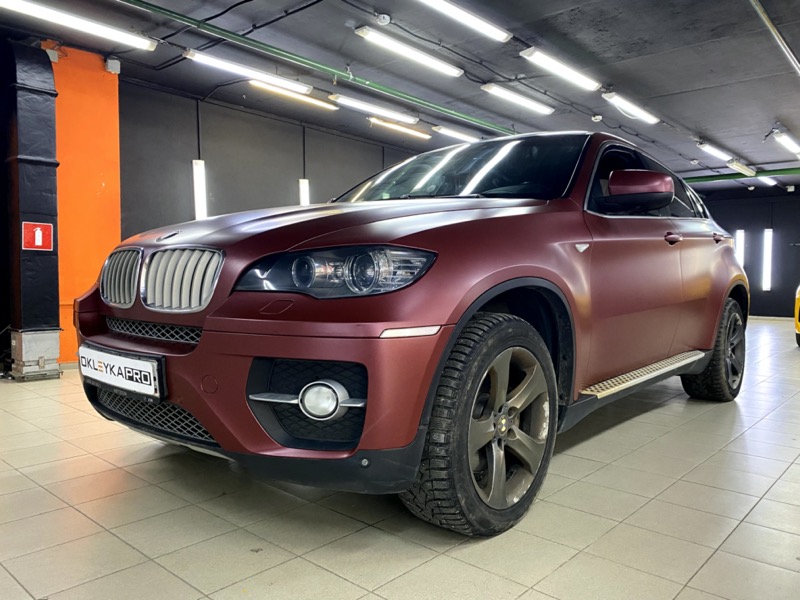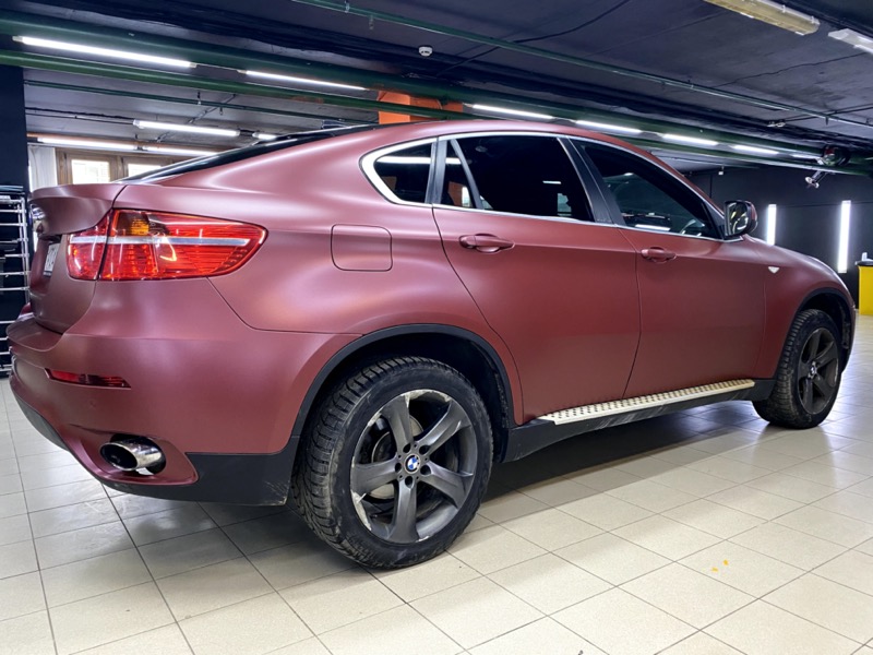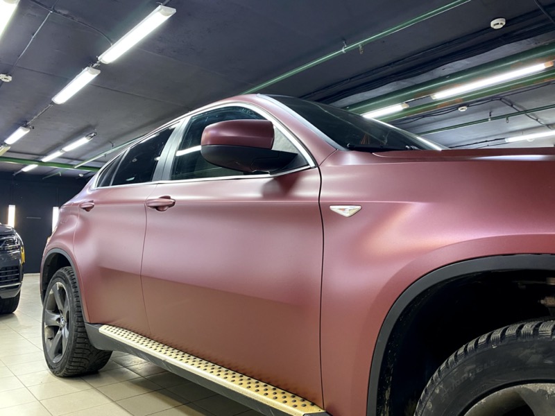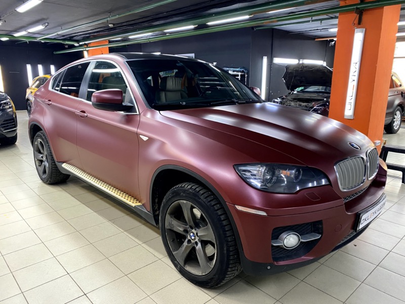 Полная оклейка автомобиля в матовую виниловую пленку премиум класса бордового цвета, матовую