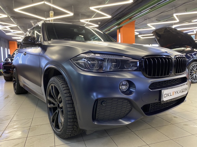 Полная оклейка в виниловую пленку (темно-серый матовый сатин с синим оттенком).