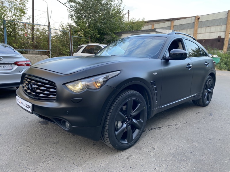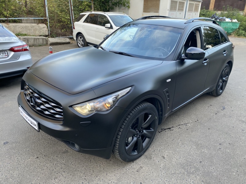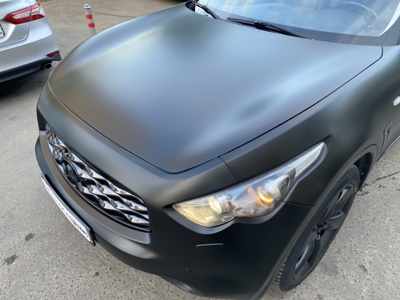 Какие материалы: Oracal 970 (матовый черный сатин) + керамика для матовых пленок GYEON Q2 Matte + Armolan (тонировка) + STEK (фары) + Oracal 970 (антихром черный глянец).