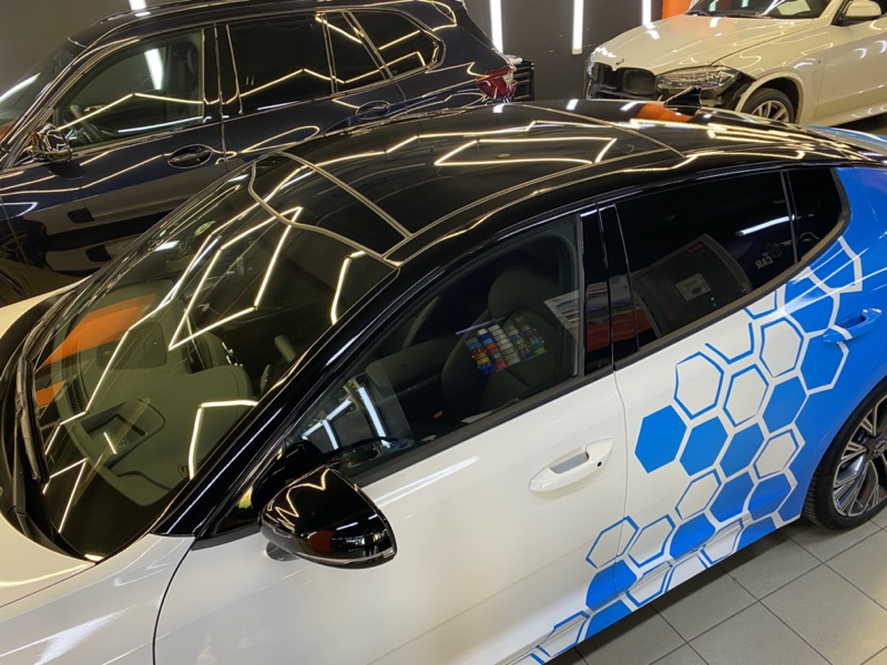 Какие материалы: Hexis (белый и голубой цвет) + STEK(фары) + керамика для глянцевых пленок GYEON Q2 CanCoat + Armolan (тонировка)