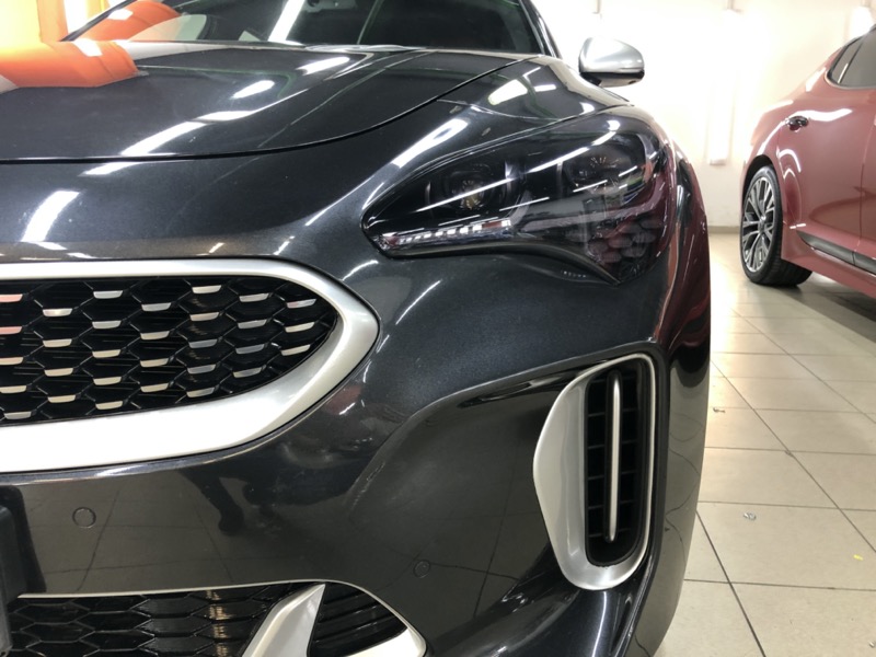 Оклейка передней решетки радиатора, зеркал, молдингов вокруг окошек в серебристую глянцевую пленку.