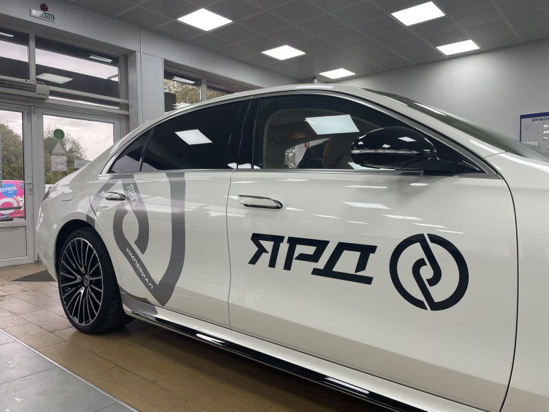 Задача: Оклеить автомобиль в фирменное брендирование компании, с использованием наклеек, вырезанных по контуру. Использовать пленку Oracal 551 со сроком службы до 5 лет.