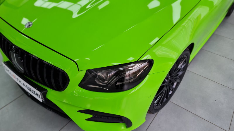 Полная оклейка автомобиля в салатовый глянцевый винил.