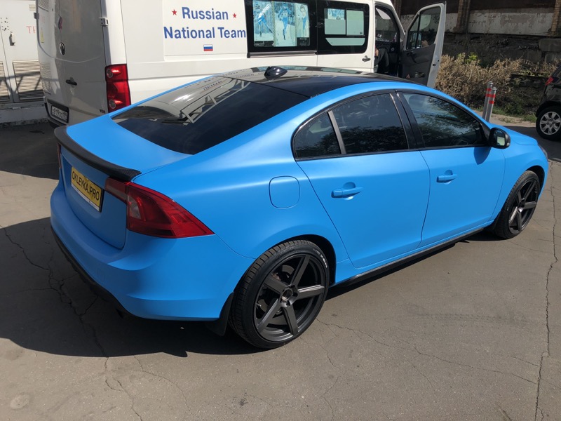 Задача: Два месяца назад, мы уже оклеивали этот автомобиль для выставки в серый глянец. После выставки клиент решил изменить цвет на синий. Этот синий цвет есть в заводских комплектациях данной модели автомобиля, но в матовой пленке KPMF он смотрится насыщеннее и красивее.